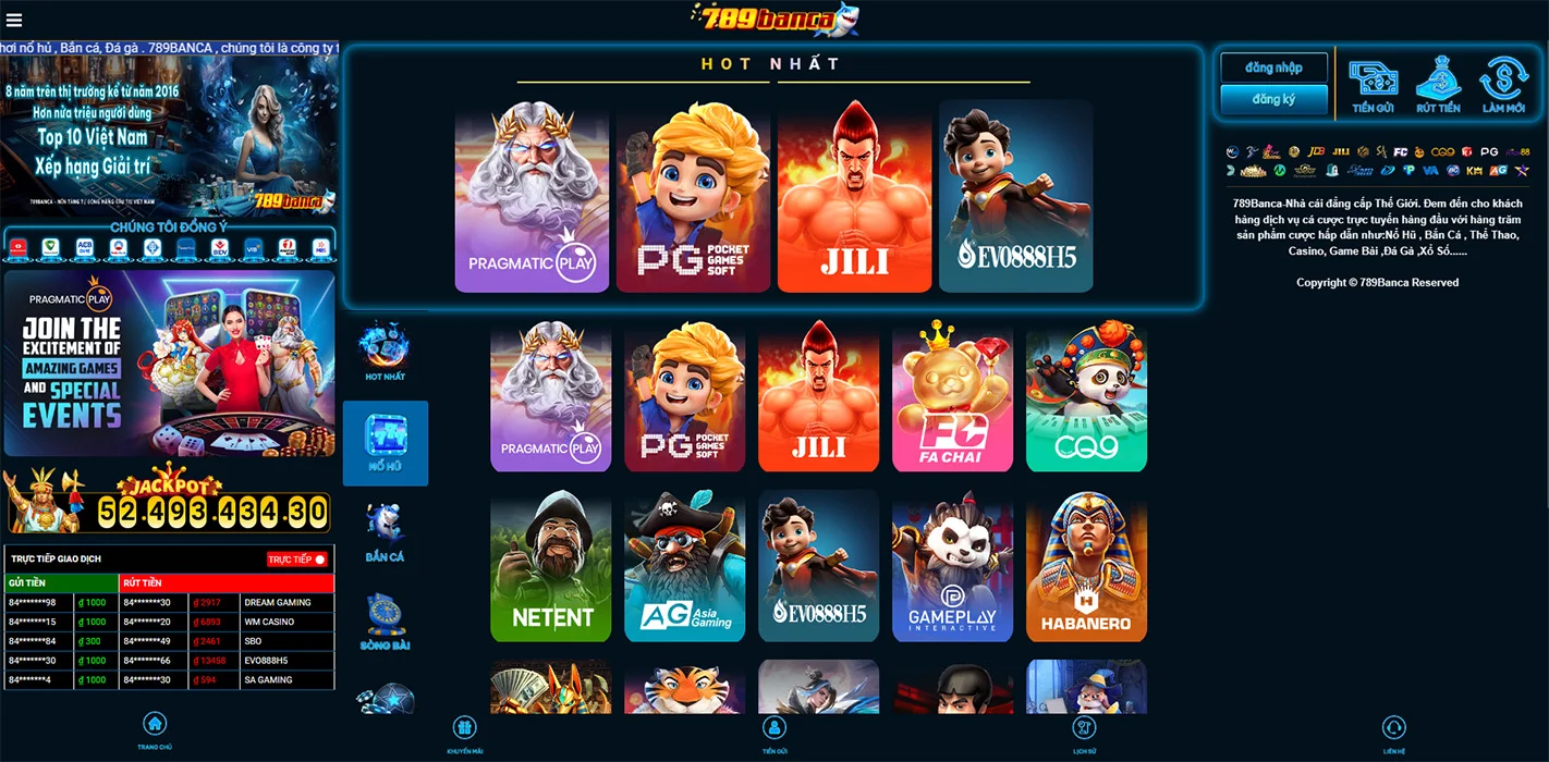 Kho game slot của 789banca đa dạng với hàng trăm tựa game từ các nhà phát triển hàng đầu như NetEnt, Microgaming, Playtech, và Pragmatic Play. Một số tựa game slot nổi tiếng tại 789banca bao gồm: