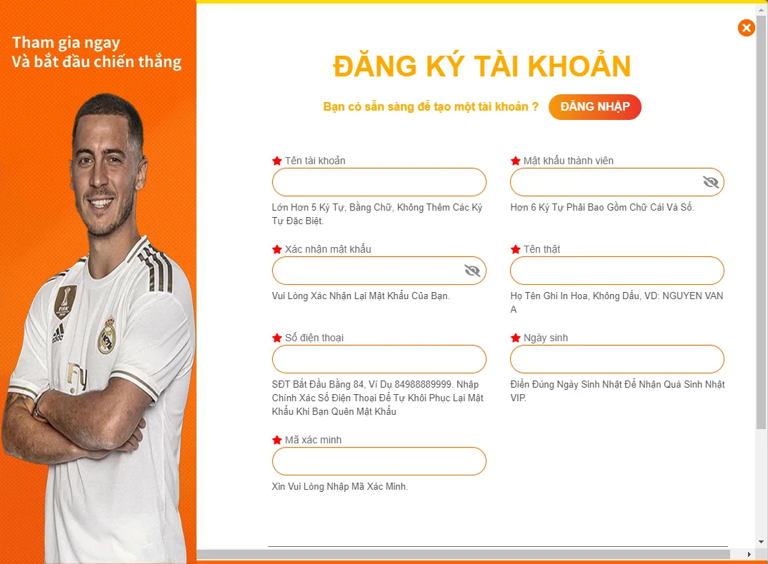 Bước 5: Tại giao diện trang chủ của nhà cái, các bạn hãy chọn vào mục Đăng nhập rồi điền vào các thông tin được yêu cầu bao gồm: