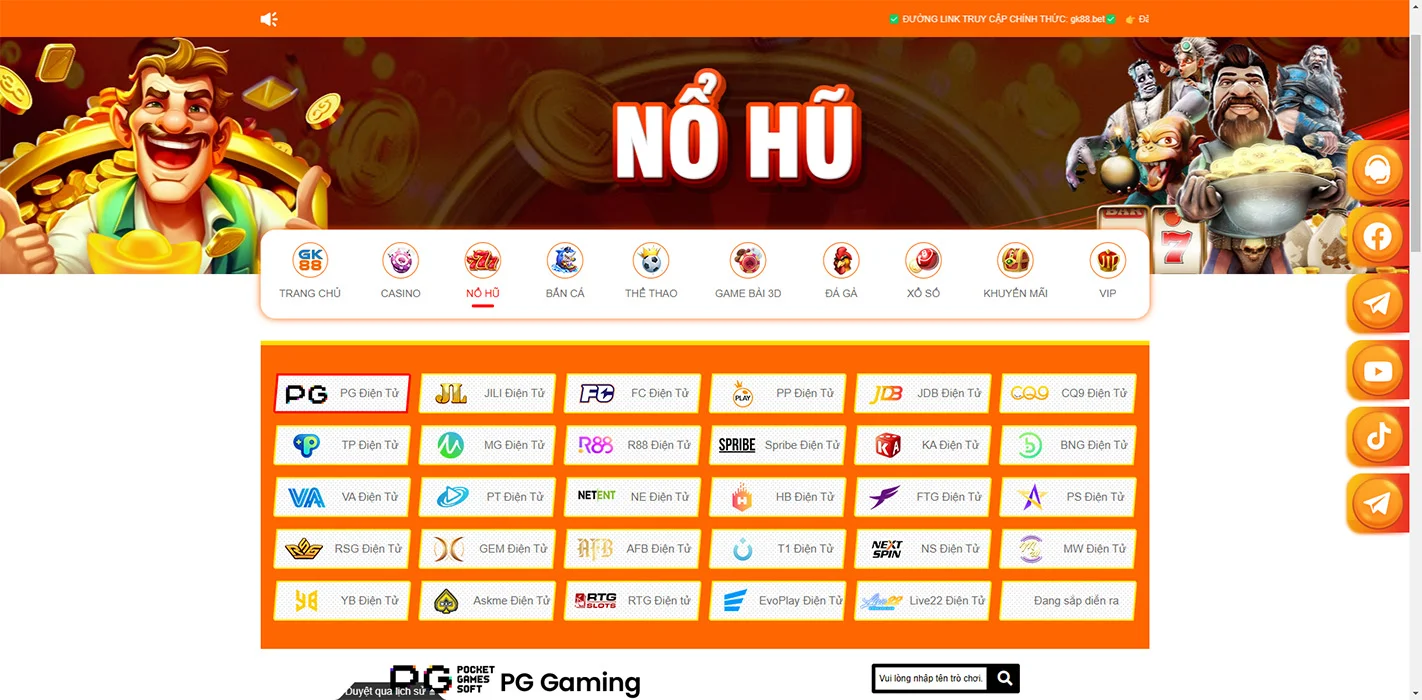 GK88 có bộ sưu tập đồ sộ các game slot với đa dạng chủ đề và tính năng. Từ slot cổ điển đến video slot hiện đại với jackpot lũy tiến, người chơi có nhiều lựa chọn thú vị. GK88 hợp tác với các nhà phát triển game hàng đầu như NetEnt, Microgaming, Playtech để mang đến những trò chơi slot chất lượng cao.